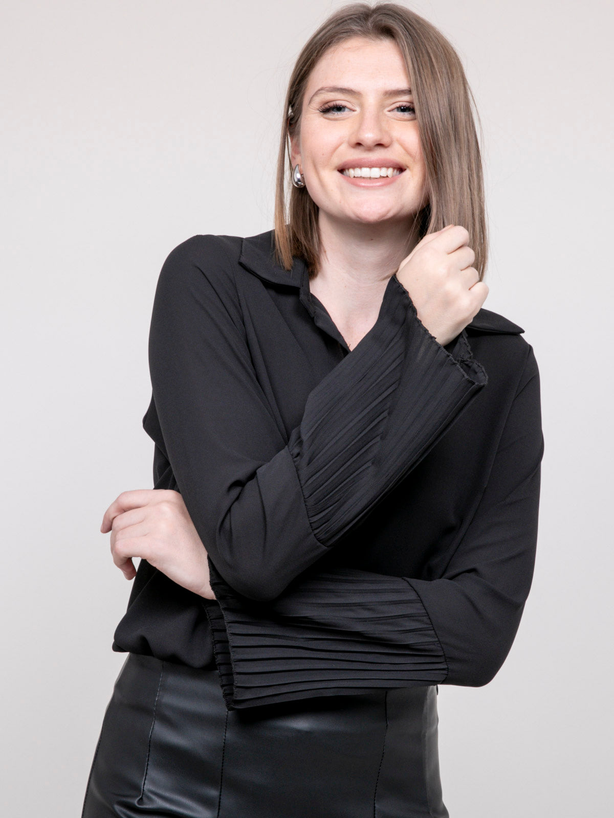 Misez sur la subtilité et le raffinement avec cette chemise revisitée signée Dona Lisa. Cette pièce chic s'intègre parfaitement à une garde-robe hivernale élégante. Son design minimaliste est rehaussé de poignets plissés qui apportent une touche couture moderne. Que ce soit pour le bureau ou une sortie urbaine, cette chemise est un véritable allié style et confort.