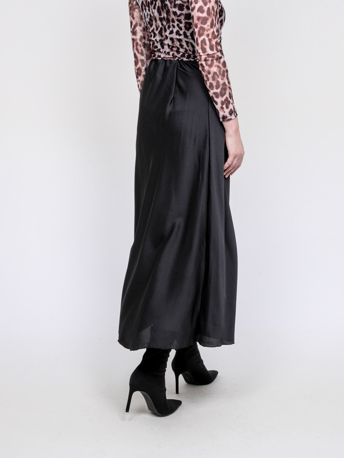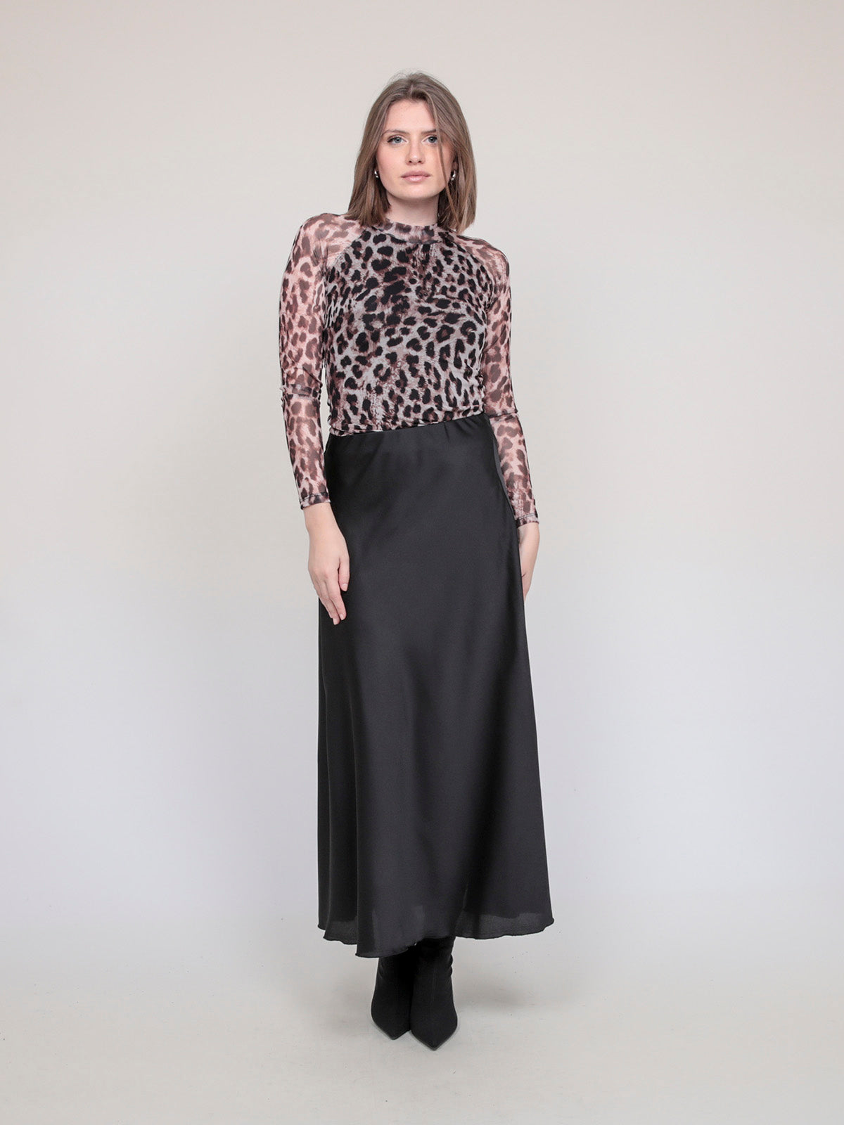 Apportez une touche sauvage et sophistiquée à vos tenues d’hiver avec cette jupe midi satinée à imprimé léopard. Fluide, féminine et terriblement tendance, elle se porte aussi bien au bureau qu’en soirée, pour un look affirmé et glamour.