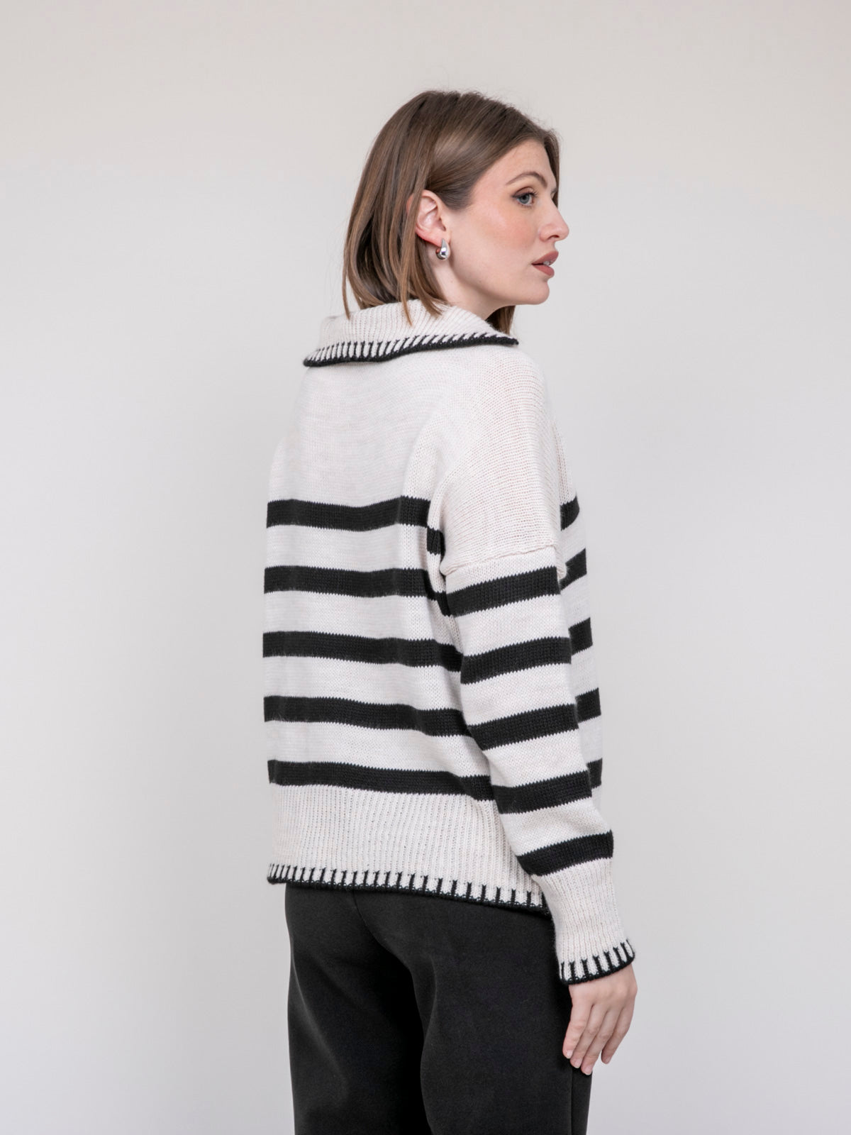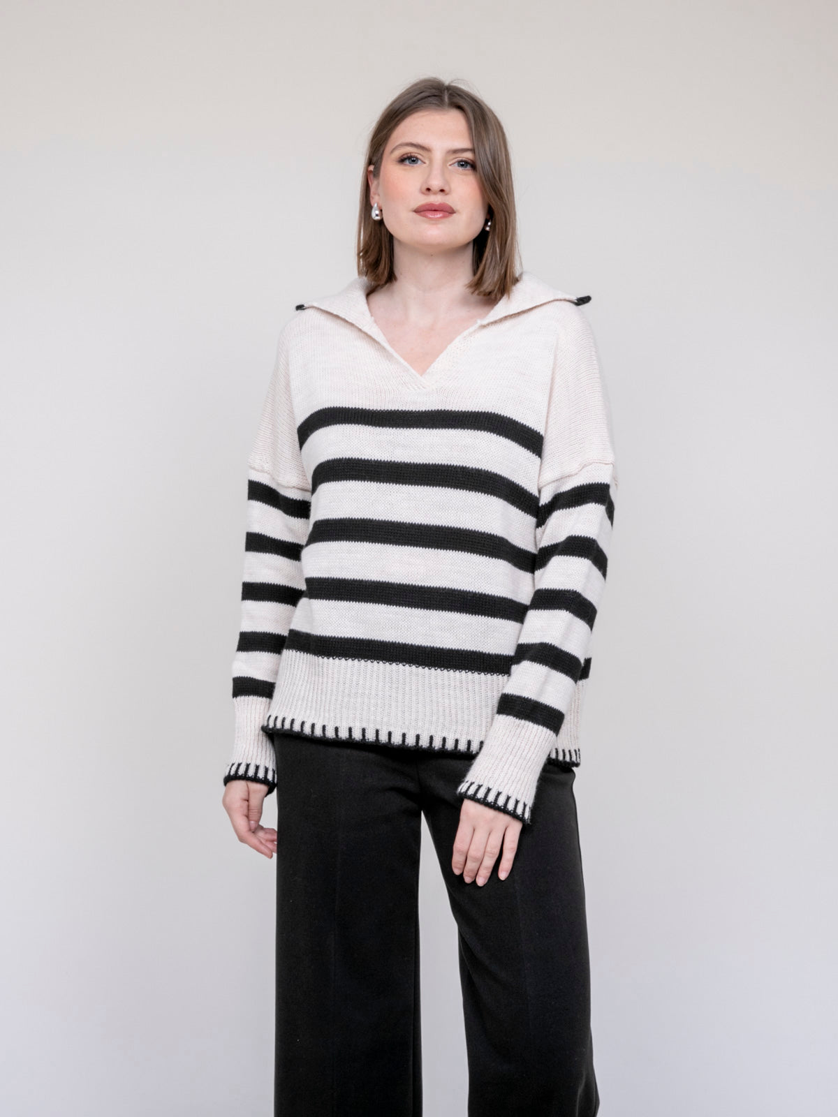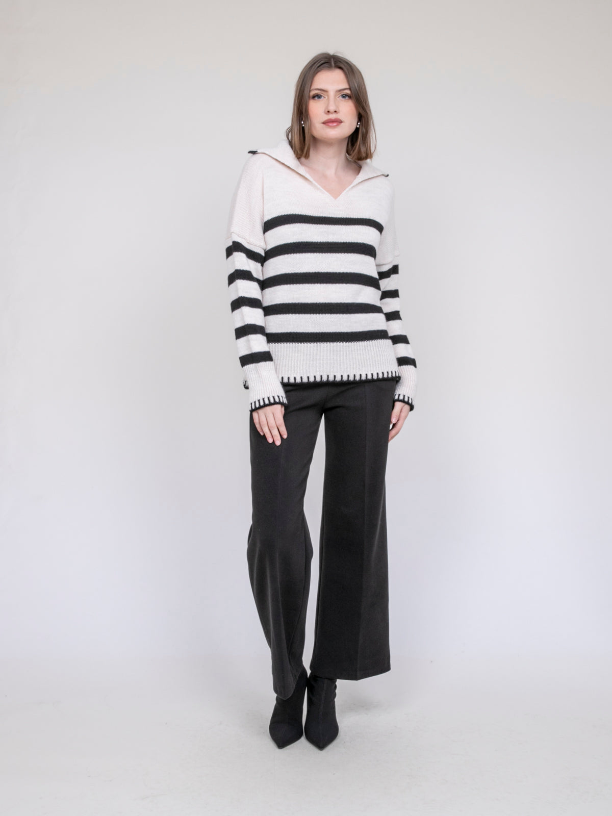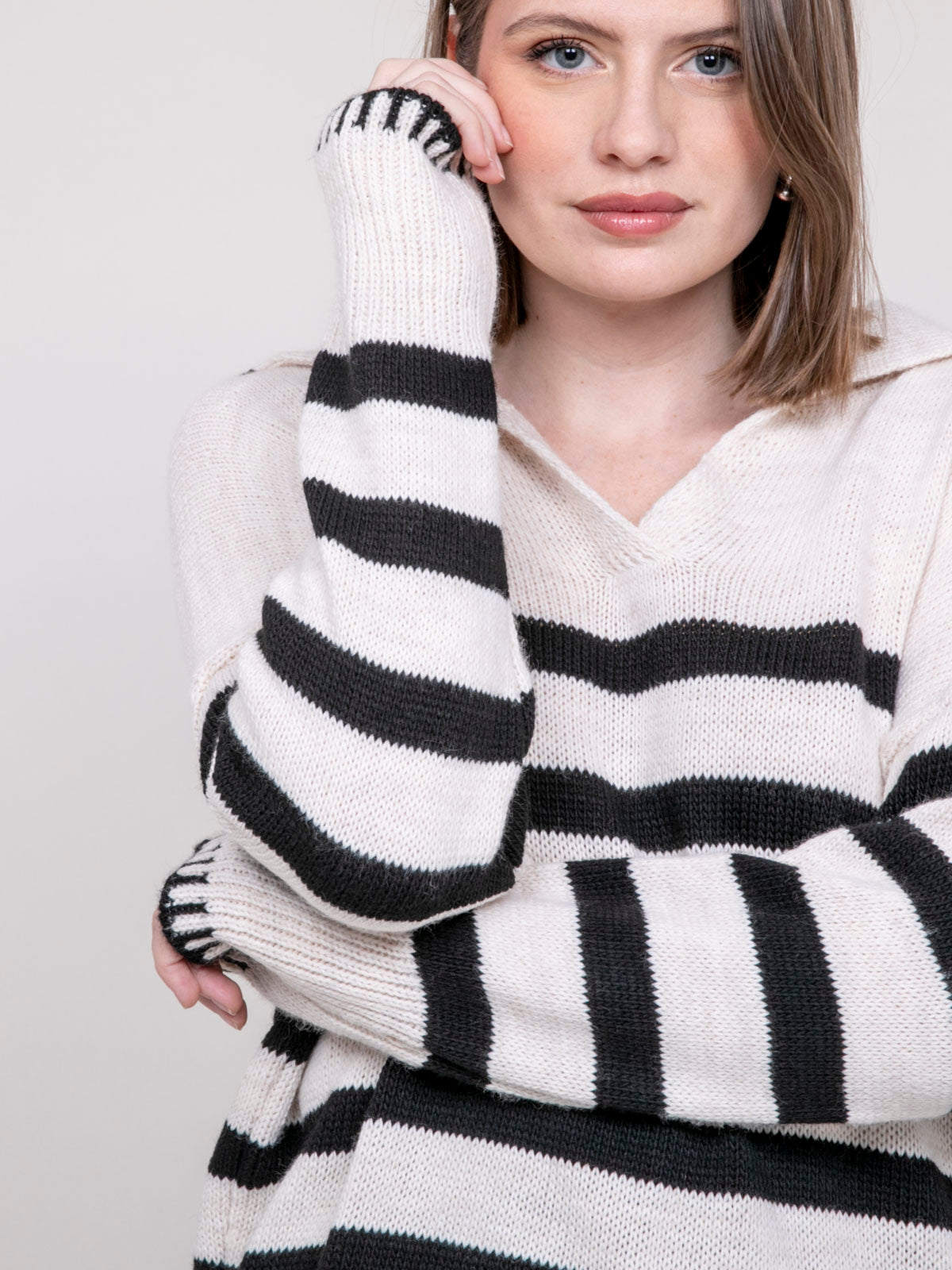 Ce pull à rayures signé Dona Lisa insuffle un air de fraîcheur chic à vos journées d’hiver. À mi-chemin entre inspiration marinière et allure contemporaine, il réchauffe vos tenues sans compromettre le style. Son col polo et sa coupe légèrement oversize flatteront toutes les morphologies tout en offrant un confort absolu. Parfait pour les femmes à la recherche d’un essentiel doux, graphique et facile à associer.