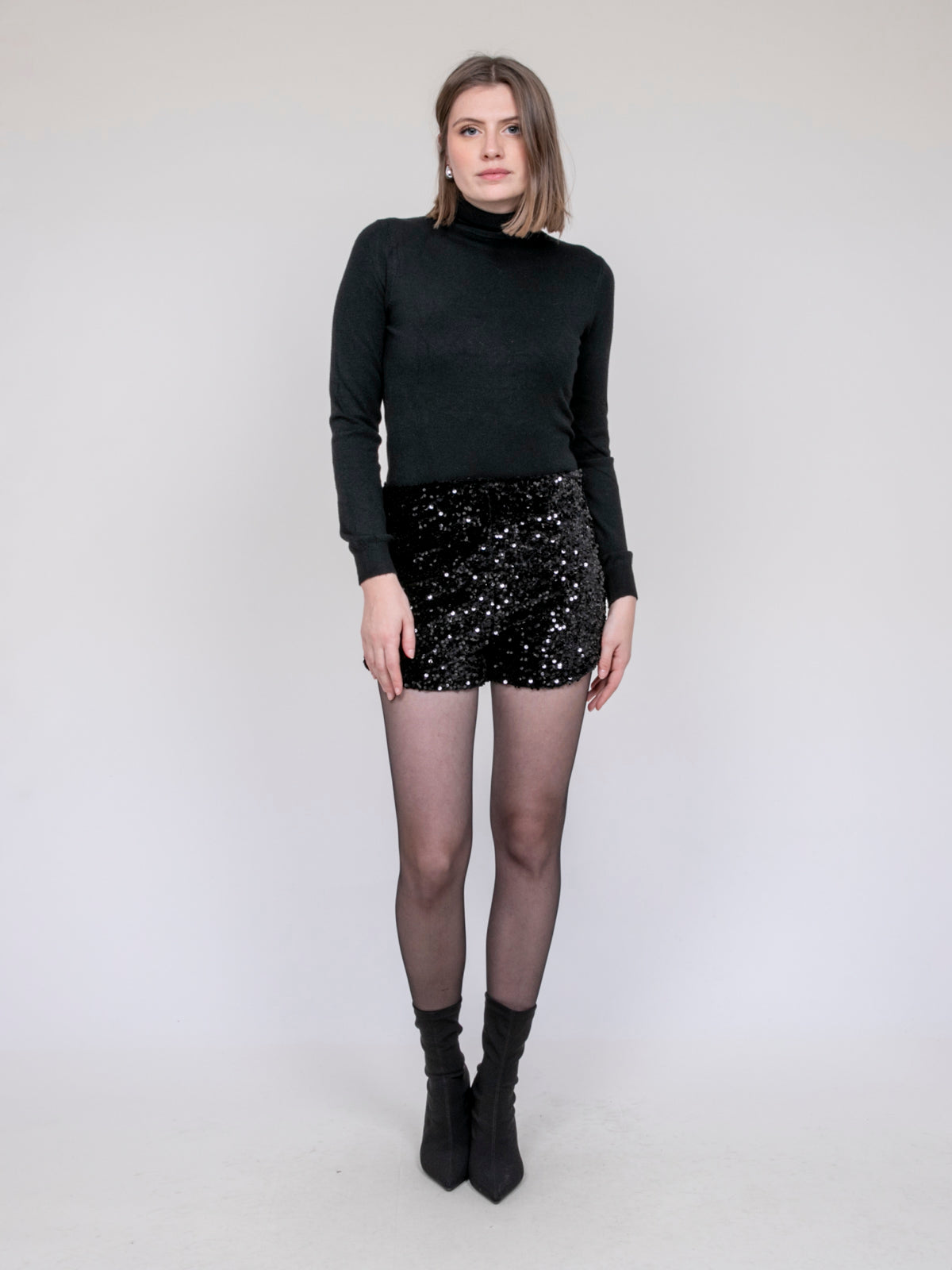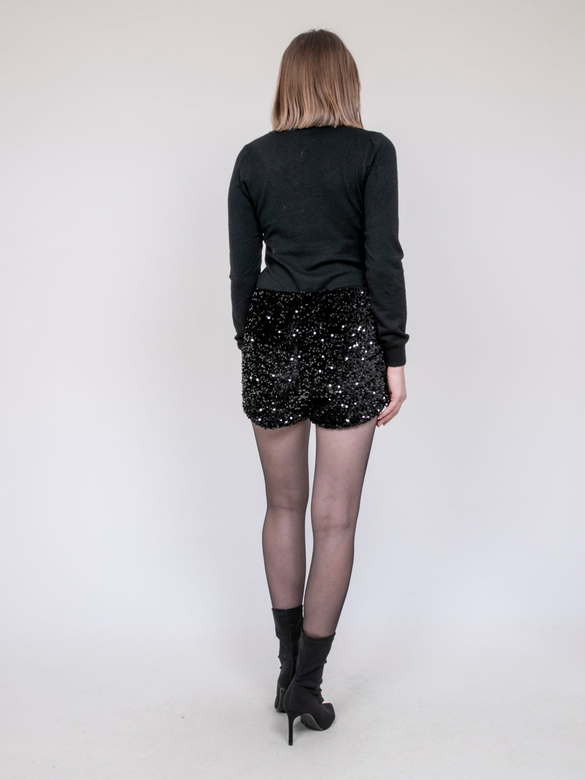 Short noir à sequins scintillants Dona Lisa : Brillez de mille feux cet hiver avec ce short noir entièrement orné de sequins lumineux. Idéal pour vos soirées et fêtes de fin d’année, il conjugue audace et élégance pour sublimer votre silhouette. Une pièce glamour qui attire tous les regards.
