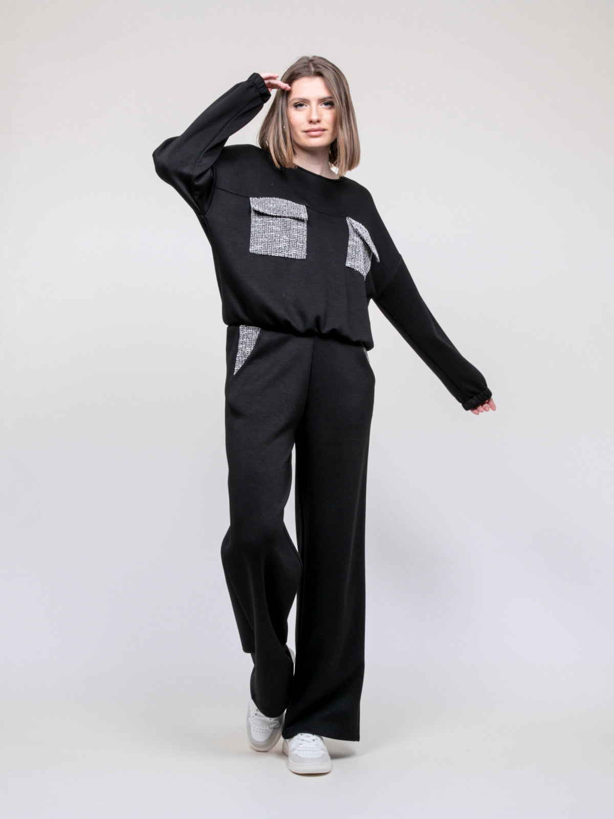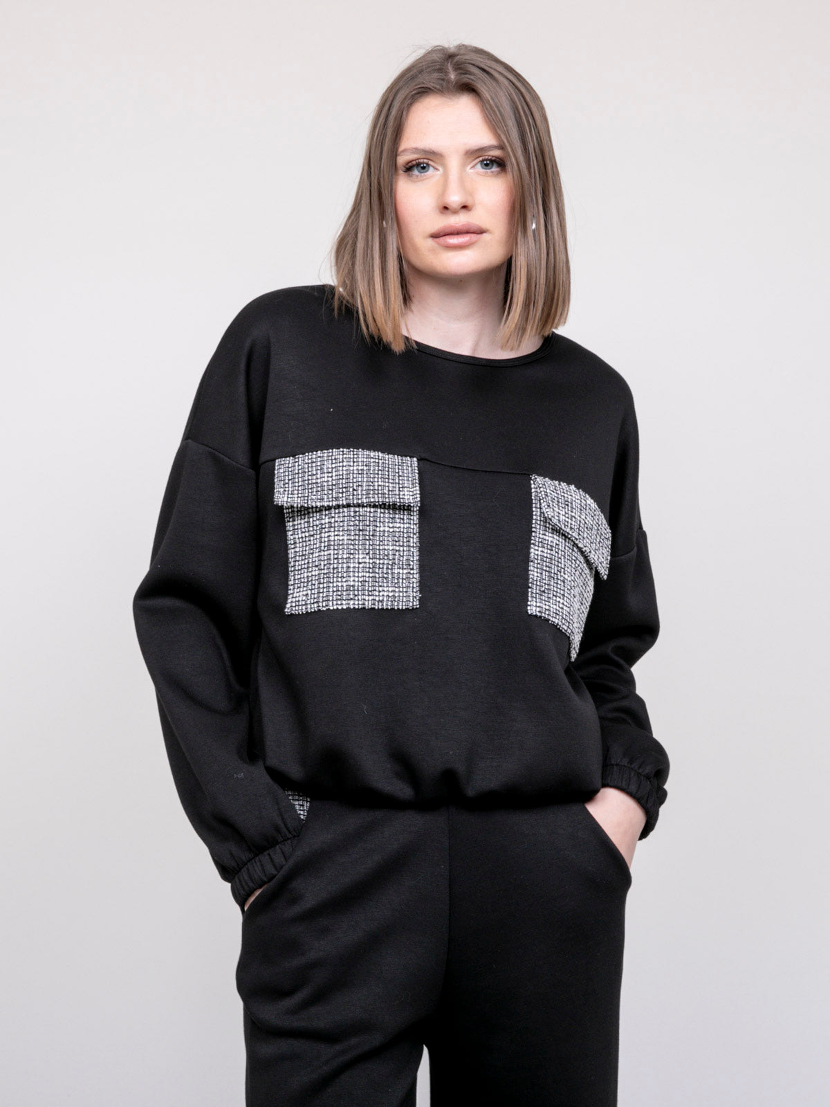 Ajoutez une touche d’élégance à vos looks d’hiver avec ce sweat noir revisité, signé Dona Lisa. Confortable et tendance, il séduit par ses poches plaquées en tissu texturé contrastant, qui apportent une note sophistiquée à une pièce casual. Idéal pour les journées fraîches, il se marie aussi bien avec un jean qu’avec une jupe pour un style urbain et raffiné.
