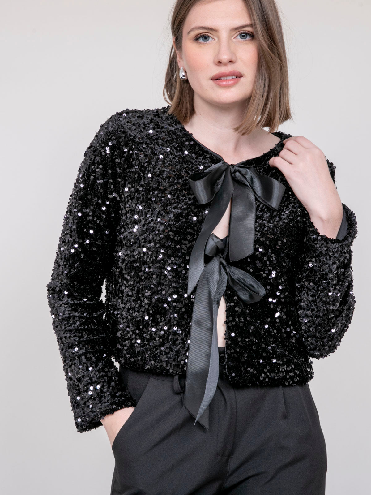 Rayonnez tout l’hiver avec cette pièce iconique signée Dona Lisa : une veste entièrement brodée de sequins brillants, idéale pour les fêtes de fin d’année ou les soirées d’hiver stylées. Son ouverture raffinée rehaussée de deux nœuds pouvant se porter devant ou dans le dos, offre un twist glamour et audacieux.