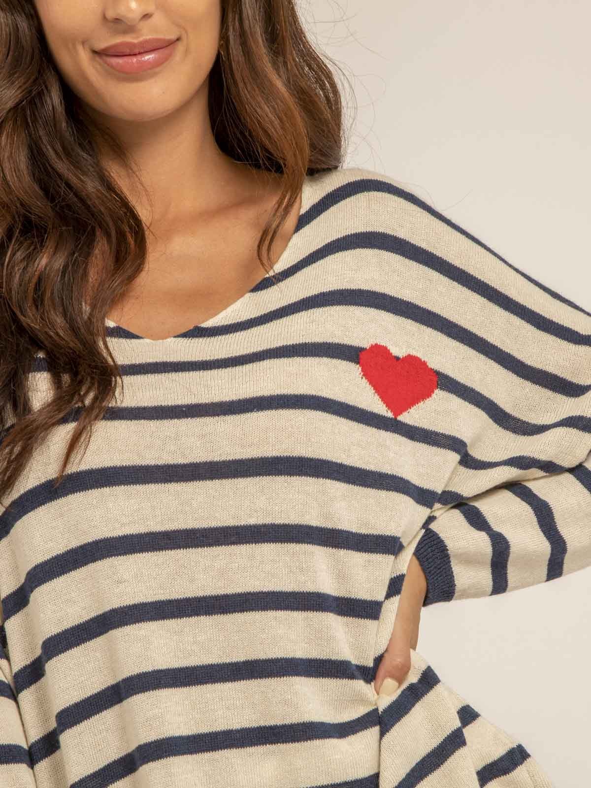 Inspiré de l’esprit marin, ce pull Dona Lisa séduit par ses rayures intemporelles et sa coupe ample. Confortable et facile à porter, il apporte une touche décontractée-chic à vos looks du quotidien. Un indispensable moderne et tendance à glisser dans sa garde-robe.